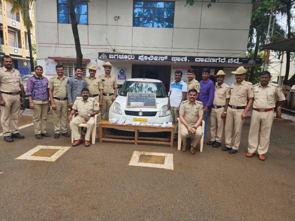 ಜಗಳೂರು ಪಟ್ಟಣದ ಪೊಲೀಸ್ ಠಾಣೆ ಆವರಣದಲ್ಲಿ ಪೊಲೀಸ್ ಇನ್ಸ್ಪೆಕ್ಟರ್ ಶ್ರೀನಿವಾಸ್ ರಾವ್ ಸುದ್ದಿಗಾರರೊಂದಿಗೆ ಸುದ್ದಿಗೋಷ್ಠಿನ್ನುದ್ದೆಶಿಸಿ ಮಾತನಾಡಿದರು ಲಿಂಗನಹಳ್ಳಿ ರಸ್ತೆಯಲ್ಲಿ ದಿ ಜುಲೈ 22 ರಾತ್ರಿ 3.3೦ ಗಂಟೆ ಸಮಯದಲ್ಲಿ ಜನವಸತಿಯಿಲ್ಲದ ಪ್ರದೇಶದಲ್ಲಿ ಅನುಮಾನಸ್ಪದವಾಗಿ ನಿಂತಿದ್ದ ಕಾರುನ್ನು ತಡೆದು ಪಿ ಎಸ್ ಐ ಸಾಗರ್ ನೇತೃತ್ವದಲ್ಲಿ ನೇತೃತ್ವದಲ್ಲಿ ನಿಧಿ ಹೊಂಚು ಕೋರರುನ್ನು ನಮ್ಮ ಪೊಲೀಸ್ ಸಿಬ್ಬಂದಿಗಳು ಬೆನ್ನುಹತ್ತಿ ಹಿಡಿದು ಬಂಧಿಸಲಾಗಿದೆ . 6 ಜನ ಗ್ಯಾಂಗ್ ಹೊಂಚುಕೋರರ ತಂಡದವರ ಮೇಲೆ ದಾಳಿ ನಡೆಸಿ ಬಂಧಿಸಿ ವಿಚಾರಣೆ ನಡೆಸಿ ಅವರ ಬಳಿಯಿದ್ದ ಕೆಲ ವಸ್ತುಗಳ ಸಮೇತ ಜಪ್ತಿ ಮಾಡಲಾಗಿದೆ.
