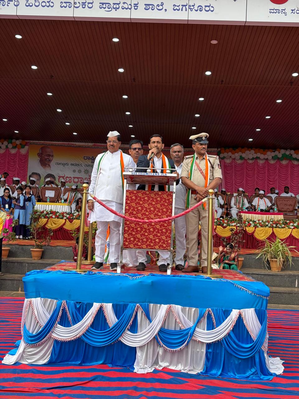 ಜಗಳೂರು ಪಟ್ಟಣದ ಬಯಲು ರಂಗಮಂದಿರ ಆವರಣದಲ್ಲಿ ರಾಷ್ಟ್ರೀಯ ಹಬ್ಬಗಳ ಅಚರಣೆ ಸಮಿತಿ ವತಿಯಿಂದ ಏರ್ಪಡಿಸಲಾಗಿದ್ದ 77 ನೇ ಗಣರಾಜ್ಯೋತ್ಸ ದಿನಾಚರಣೆ ಅಂಗವಾಗಿ ಧ್ವಜವಂದನೆ ಸ್ವೀಕರಿಸಿ ಮಾತನಾಡಿದರು